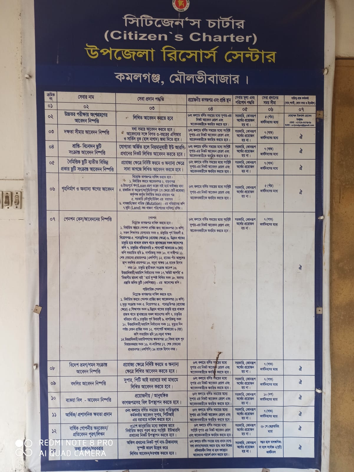 উপজেলা রিসোর্স সেন্টার এর সিটিজেন চার্টার